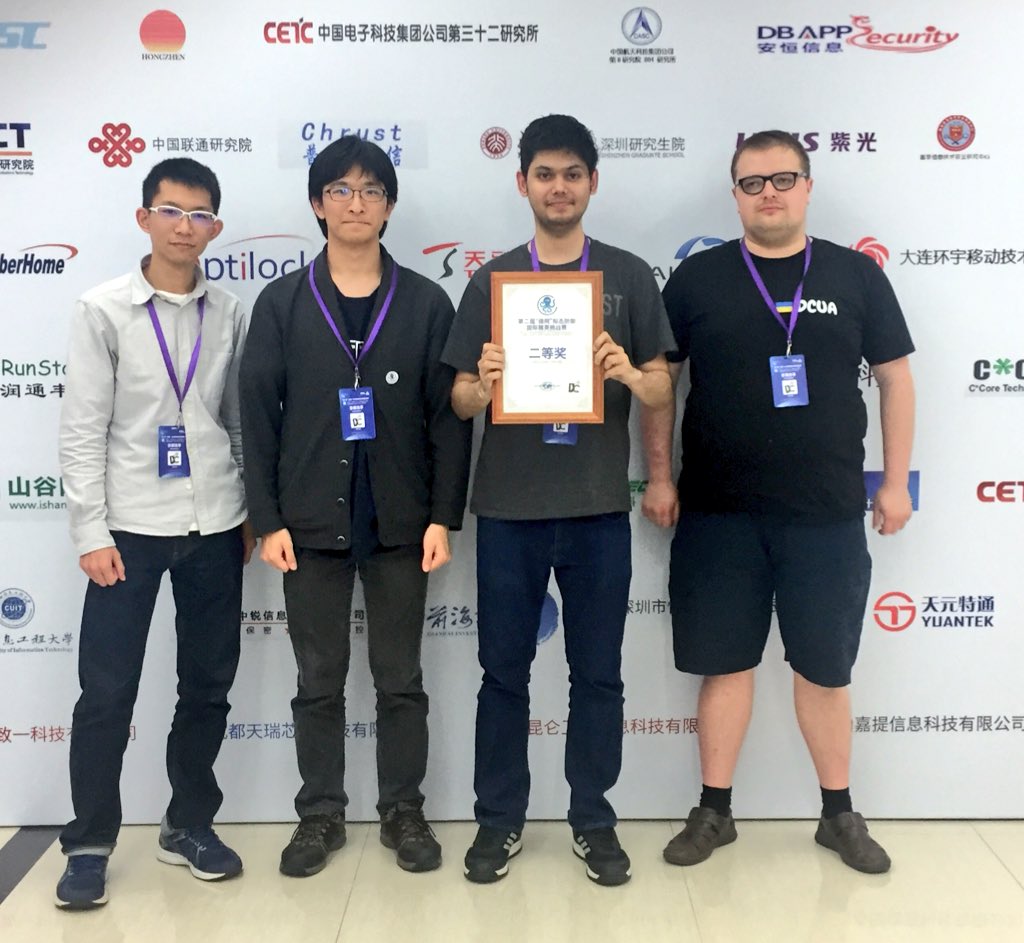 Winner of GCCS – New Delhi, India. (along with romanking98) Award from Indian Prime Minister (Global Conference on Cyber Space) – IT CTF (2017)